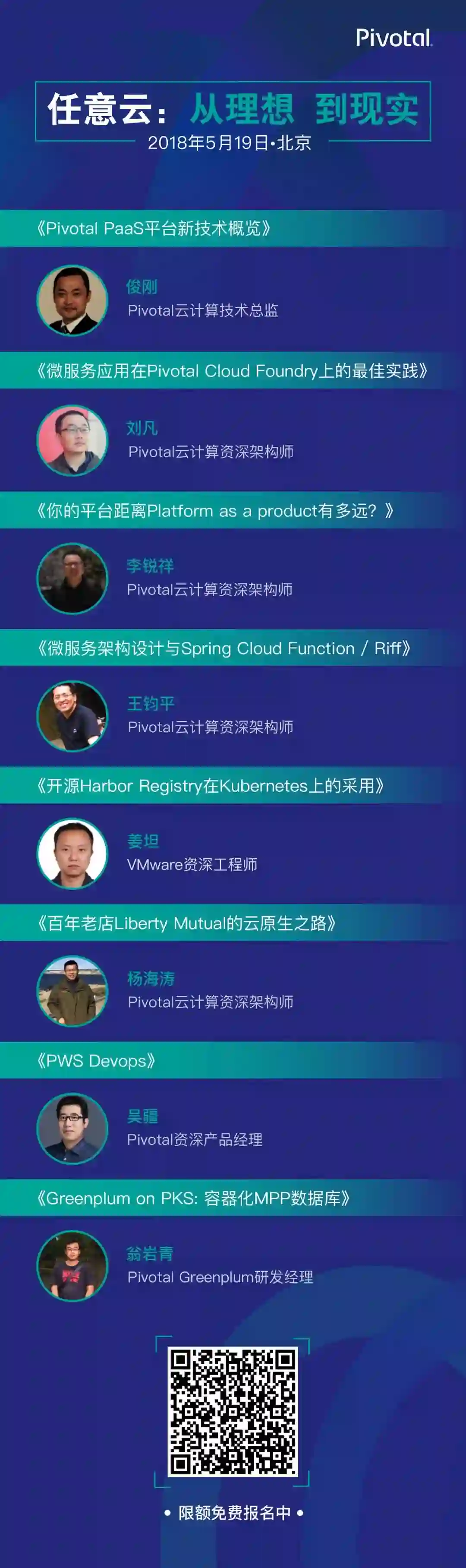 InfoQ记者近日采访了 Pivotal云计算技术总监俊刚,求解以上疑问;此外,InfoQ与 Pivotal将联合在 5月 19日在北京举办一场有关 Kubernetes、Cloud Foundry以及 Spring、微服务、云原生的研讨会,更多围绕 PaaS的技术细节将在会上进行详解,(点击文末可以免费报名)。