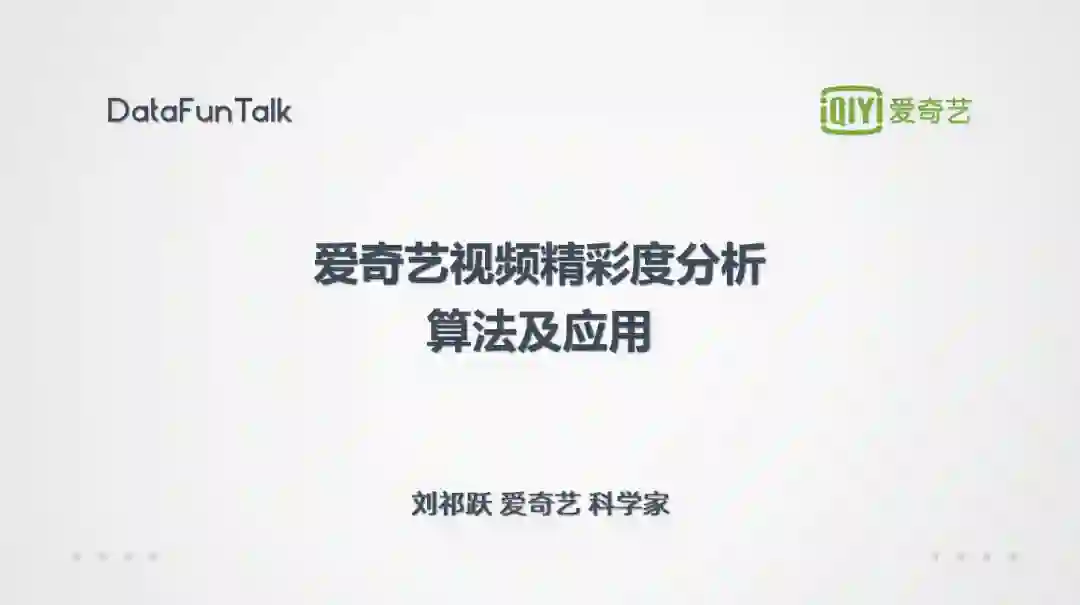 分享嘉宾:刘祁跃 爱奇艺 科学家