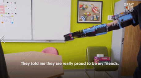 David 的这双 “ 乐高臂 ” 就像是钢铁侠的战甲一般,赋予了他正常生活的能力。