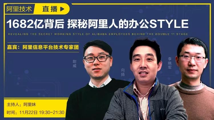 11月22日(本周三)晚七点半,阿里内部办公“黑科技”,一览无遗!识别下方二维码,关注阿里技术微信公众号,回复“直播”关键词、速度报名。