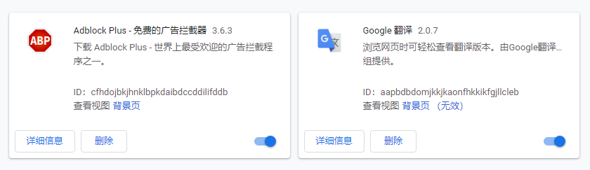 小雷常用插件是 Adblock 和 Google 翻译,就是下面这俩玩意儿。