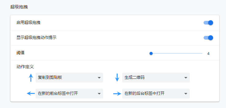 这个功能说白了就是增加一个快捷手势,让你拖动图片、文字时就能执行指令。(拖动时按住鼠标左键)