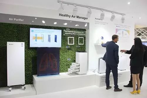 空气净化器:本届IFA展上,长虹空气净化器KJ650F-Q1AB首次亮相,以其时尚简洁外观、智能语音交互、高效净化能力,吸引大批国内外参展商及媒体关注,荣获“智能净化技术创新” 金奖,是空气净化行业首个在IFA展上获奖的中国品牌。
