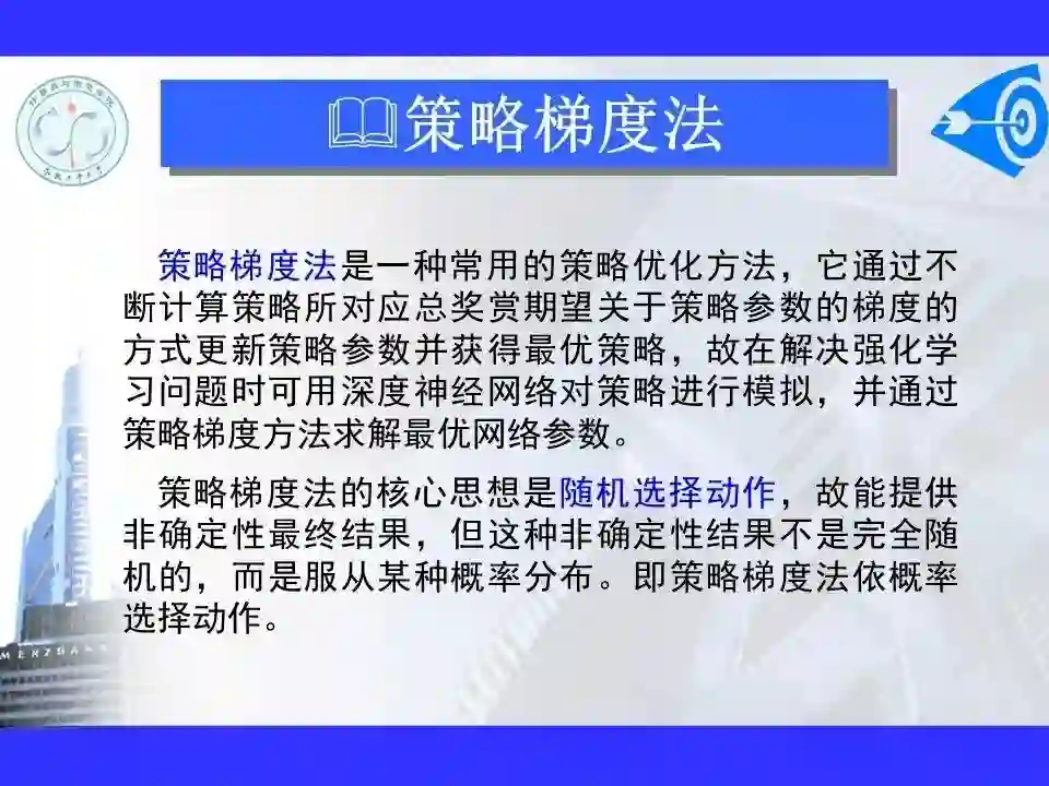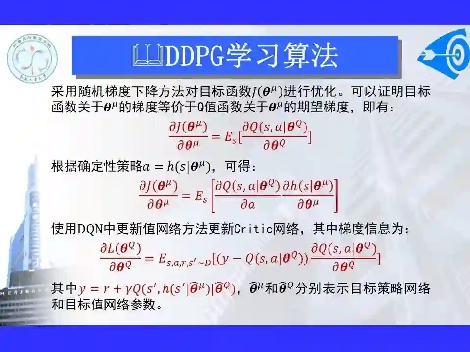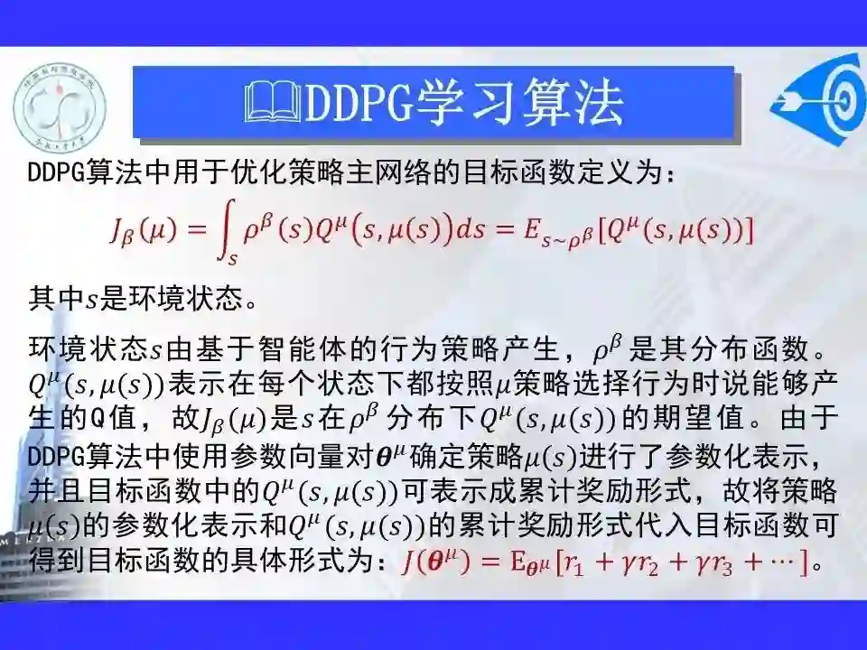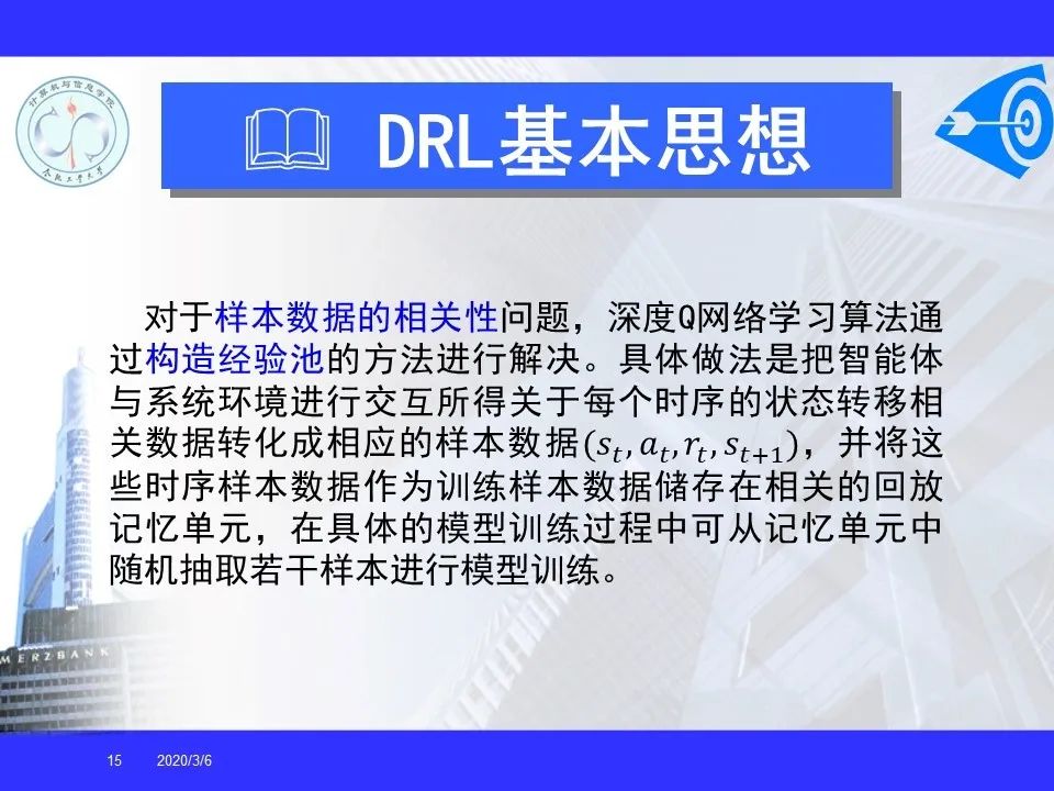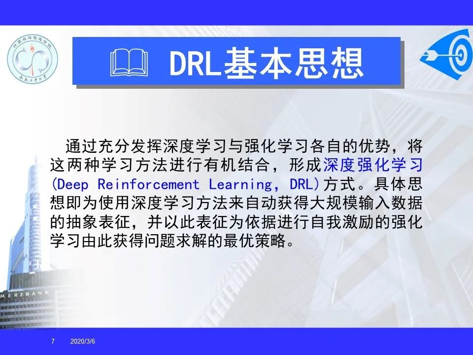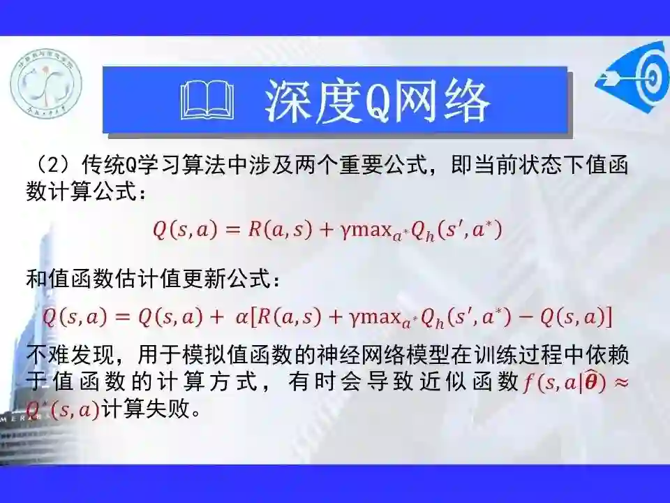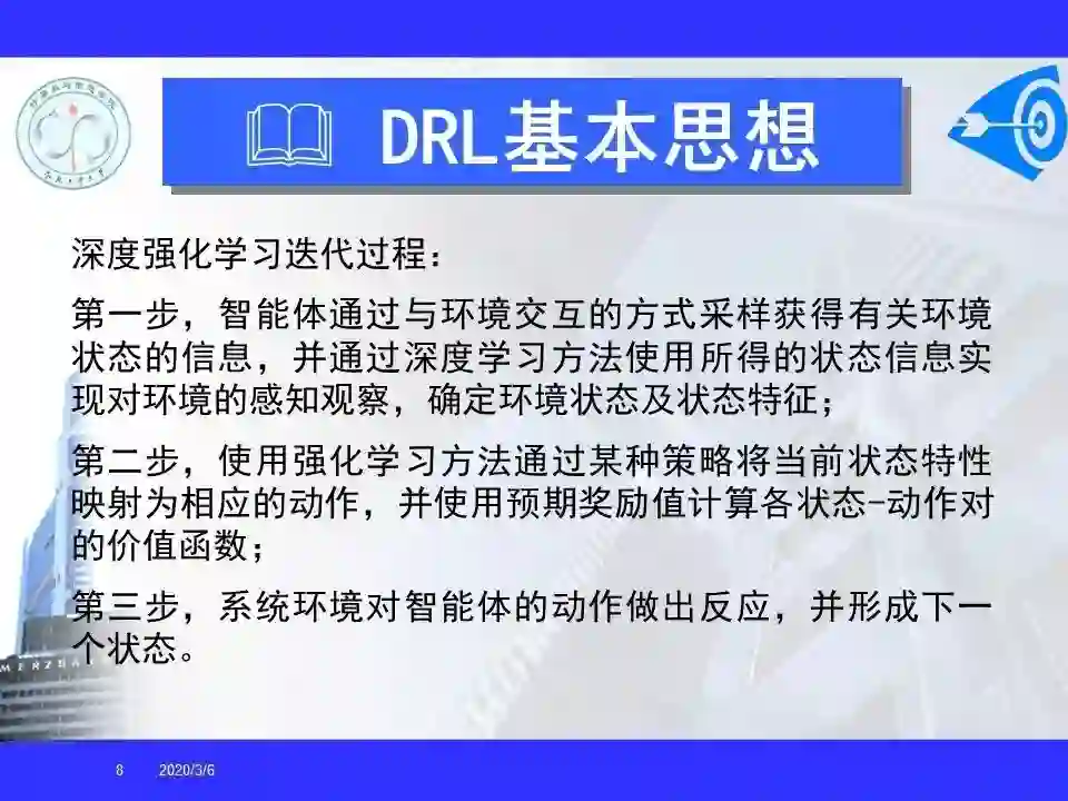 深度强化学习已经能够解决一部分在以前看来不可能完成的任务,在游戏博弈、优化控制等领域取得卓越应用成果。很多学者认为深度强化学习将在不久的将来成为一种能够解决复杂问题的通用智能计算方式, 并为人工智能领域带来革命性的变化。