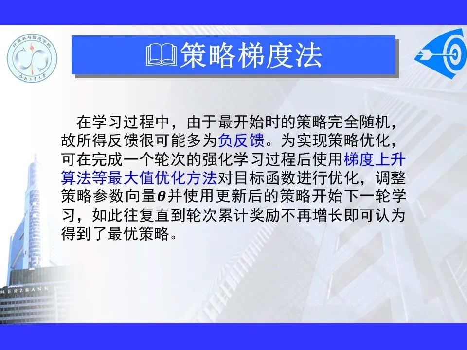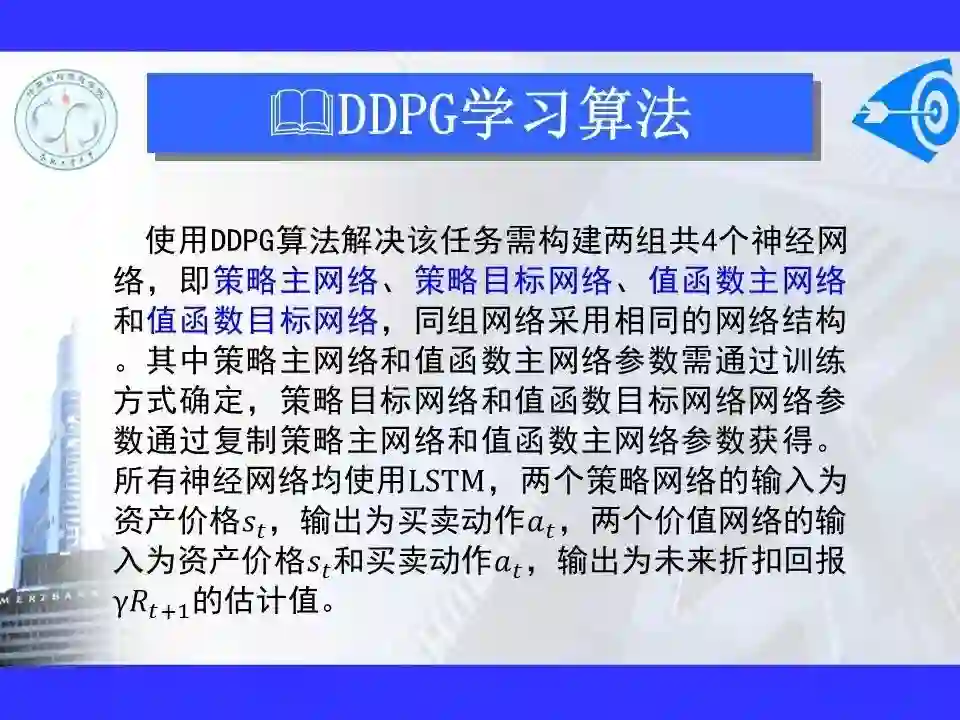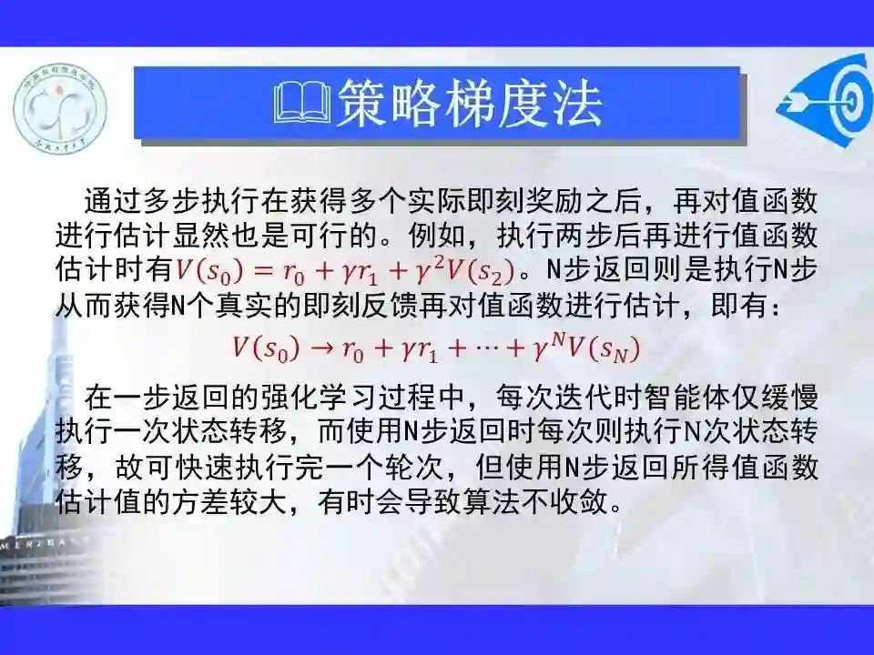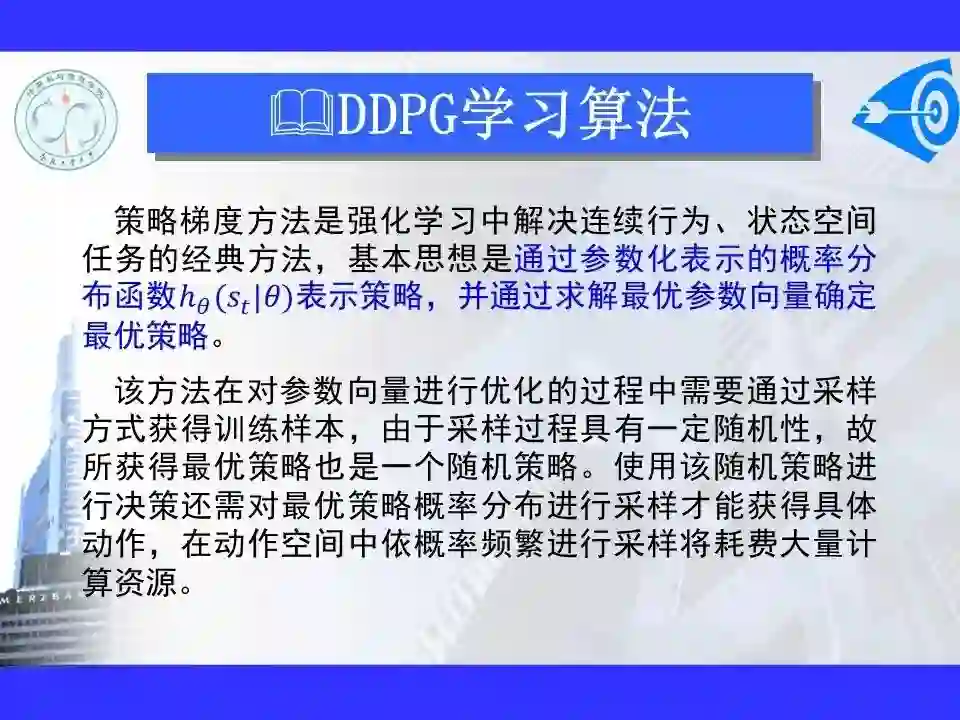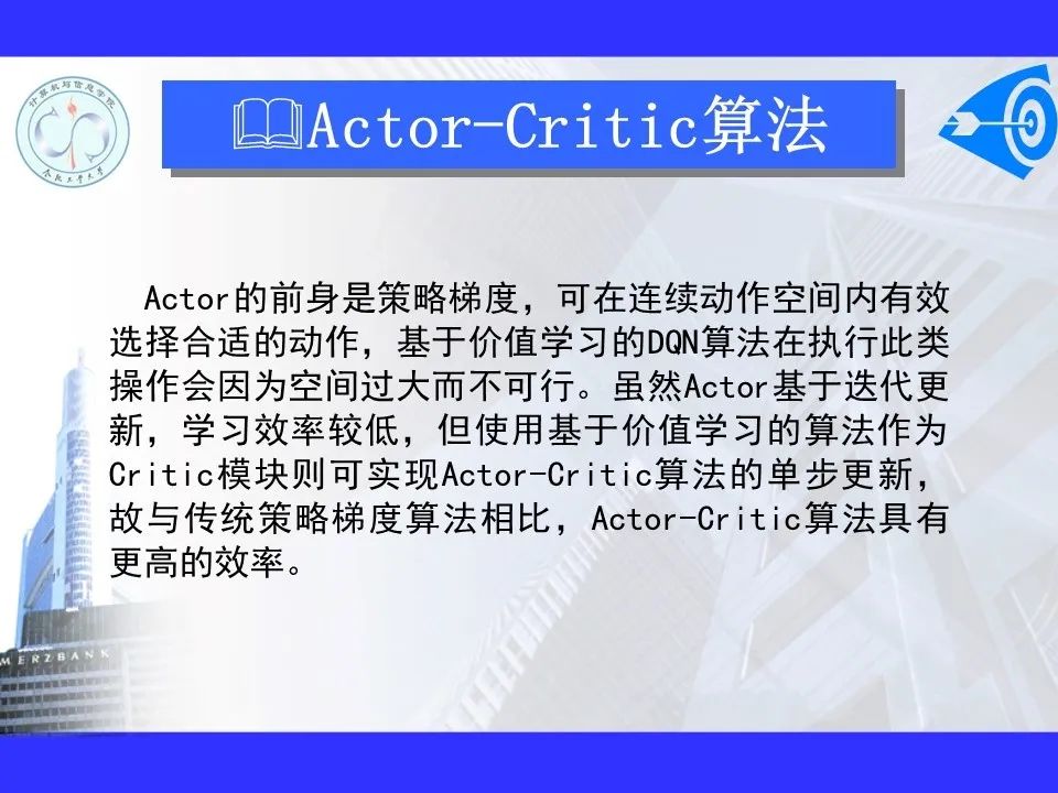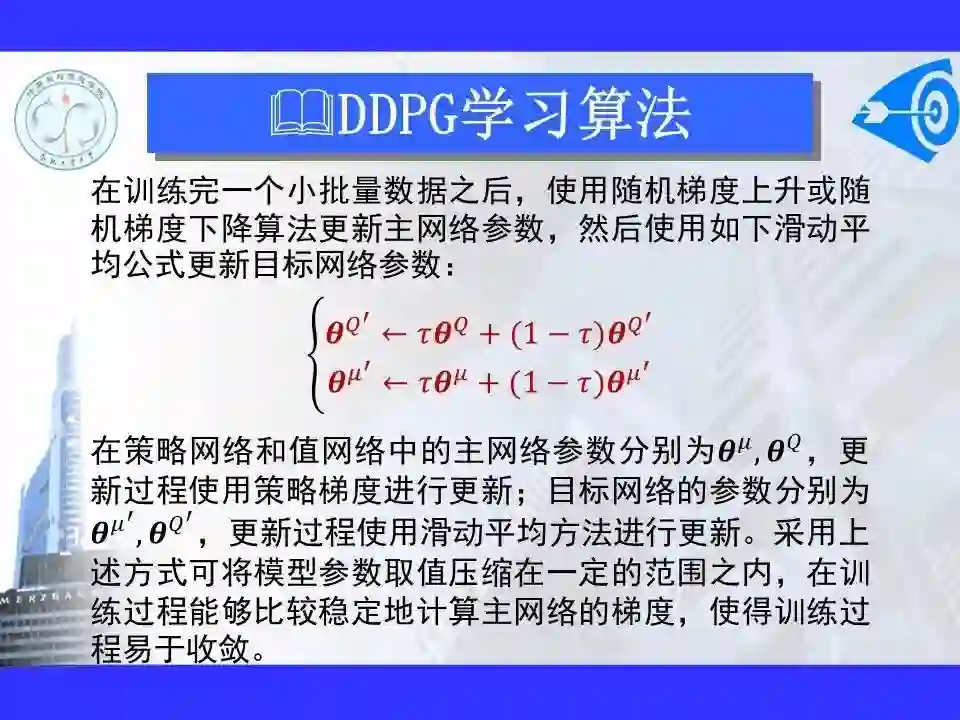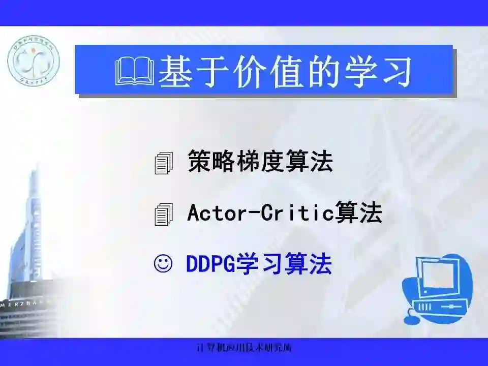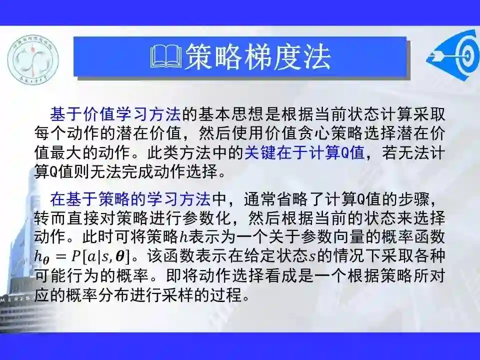 深度强化学习已经能够解决一部分在以前看来不可能完成的任务,在游戏博弈、优化控制等领域取得卓越应用成果。很多学者认为深度强化学习将在不久的将来成为一种能够解决复杂问题的通用智能计算方式, 并为人工智能领域带来革命性的变化。