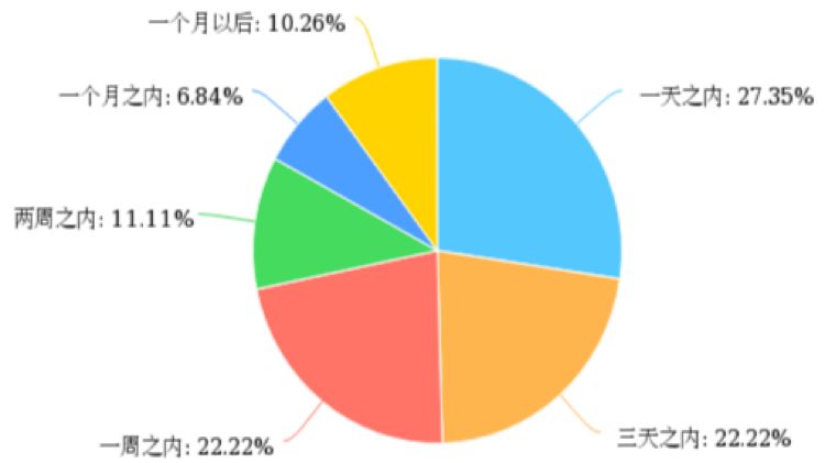 那么,那些事后会去看的信息,又是隔了多久才去看的呢?图2可见,只有不到三成的学生会在一天内去看那些囤积的信息,而且有将近三成的同学会拖延7天以上的时间再去看这些信息。