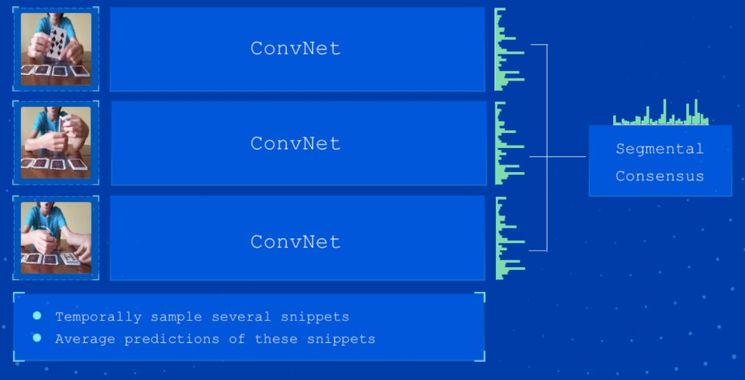 TSN 模型是基于 2D-CNN 经典模型,首次引入序列信息到视频分类,证明序列信息有效性。图 6 为 TSN 模型的框架结构。