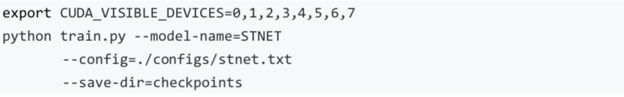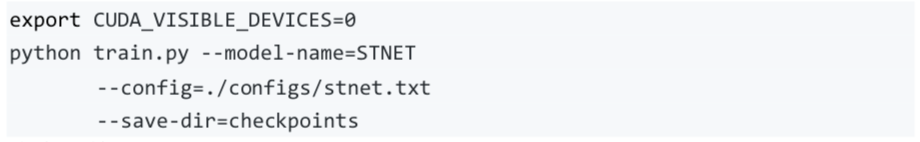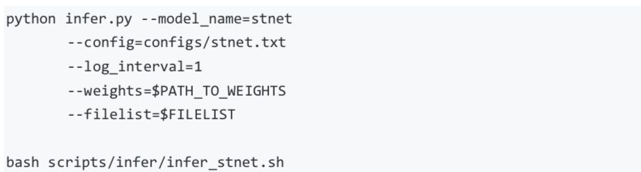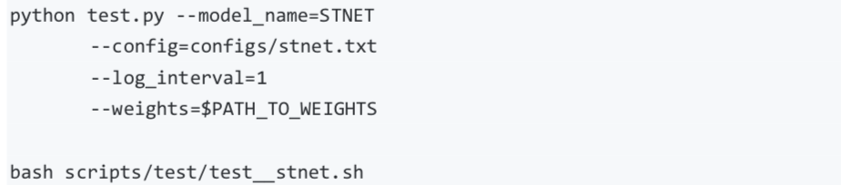 注 1:使用 scripts/test/test_stnet.sh 进行评估时,需要修改脚本中的 --weights 参数指定需要评估的权重。
