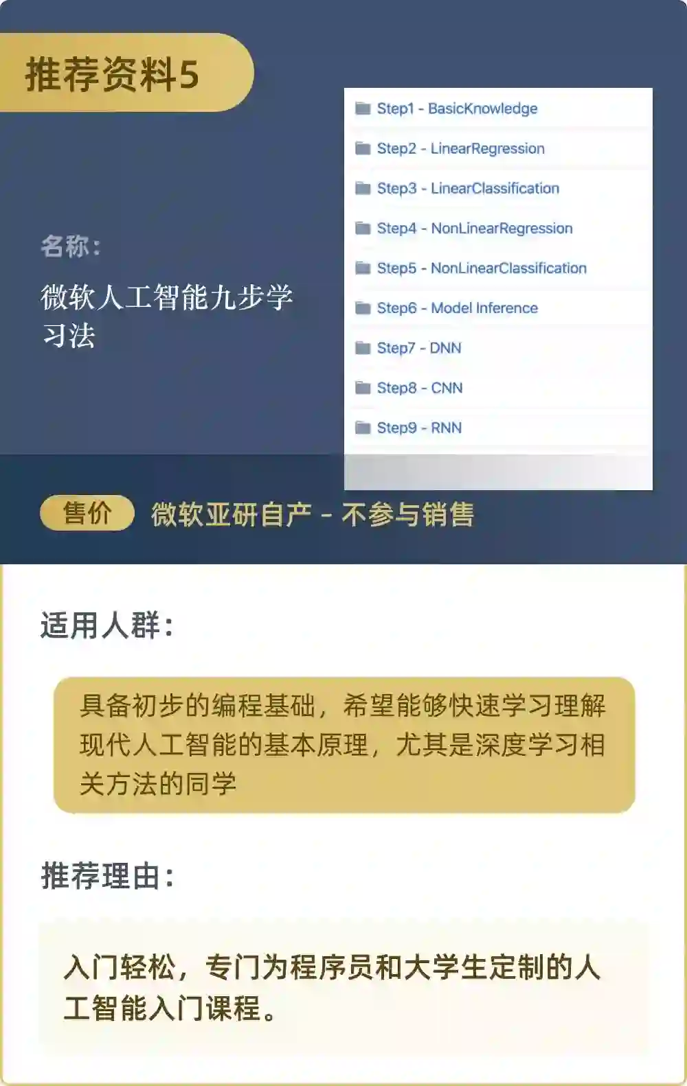 这些资料其中4个是人工智能书籍,另外还加一个:人工智能黄埔军校—微软亚洲研究院人工智能学习材料。