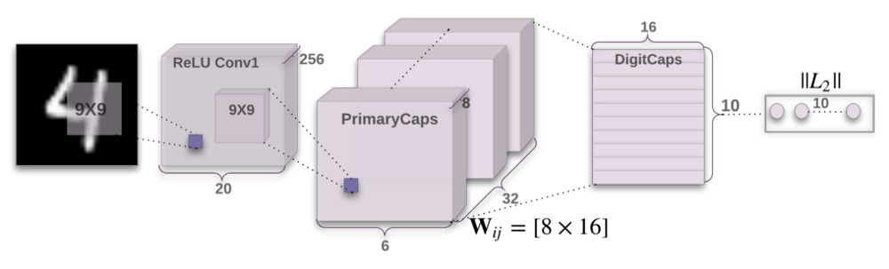 同样,胶囊这个概念本身并不算新,Hinton之前也提到过它,但是直到现在才出现了一种能够实现它的算法。这个算法叫做“囊间动态路由”。它允许胶囊之间相互通信,并创建类似计算机图形中场景图的表示。