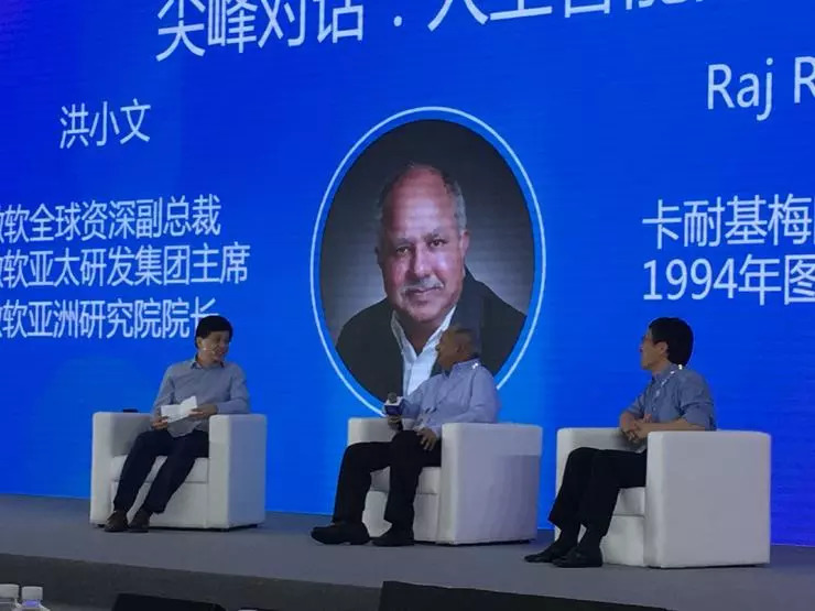 这场分论坛的第一个重磅环节,是一场颇具戏剧性但同时又富于学术意味的对话环节。担任对话主持的是洪小文,而对话嘉宾分别是沈向洋和 1994 年图灵奖得主、AI 领域的大神级人物 Raj Reddy,他在 WAIC 2018 的主论坛上作为学术专家进行了首场主题演讲。