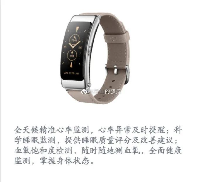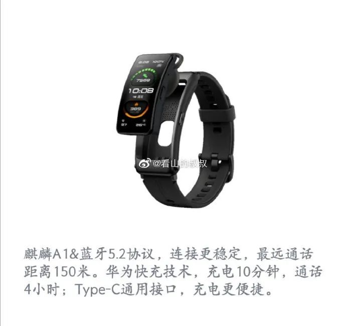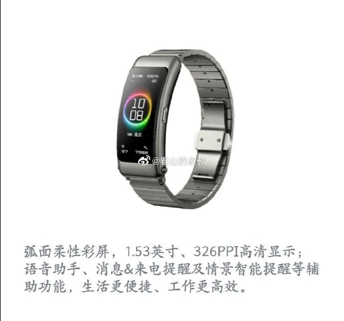来自@看山的叔叔 的爆料,华为手环 B6 采用弧面柔性屏,1.53 英寸,326ppi,支持语音助手、心率检测等功能,将搭载麒麟 A1 芯片,可作蓝牙耳机使用,最远通话距离为 150 米,采用 Type-C 接口,支持华为快充技术,充电 10 分钟,通话 4 小时。