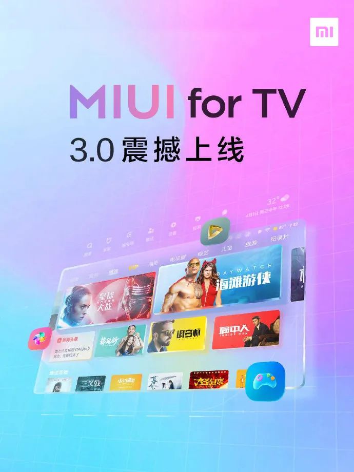 官宣:小米 MIUI for TV 3.0 今日正式上线。新版 MIUI for TV 拥有全新的美学设计以及更智能的交互体验。