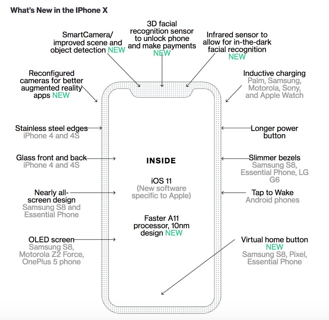 iPhone X将拥有全新设计的外观、边到边屏幕、无Home按钮、无Touch ID指纹识别、3-D面部扫描解锁、感应充电、更快的处理器