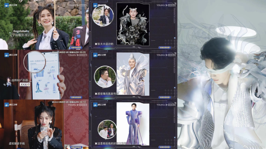 今年 5 月播出的浙江卫视《奔跑吧》节目设计了一个与元宇宙有关的桥段——明星嘉宾 Angelababy 为张大大、沙溢、郑恺等人设计了虚拟服装,并展示了上身效果。6 月,艺人何洛洛也在微博发布了自己身着虚拟时装的效果图,获得 36.3 万点赞。7月,综艺《追星星的人》节目收官发布了吴奇隆等艺人置身虚拟元宇宙空间站的海报图。