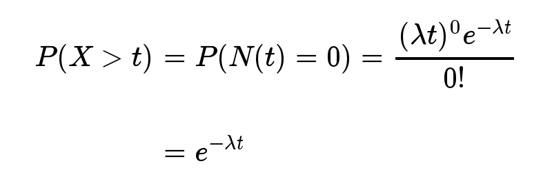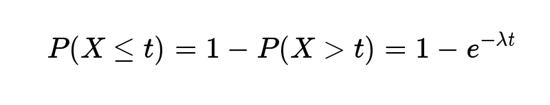 反过来,事件在时间 t 之内发生的概率,就是1减去上面的值。
