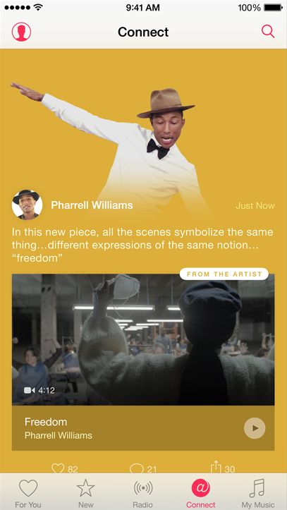 2015 年 Apple Music 刚刚问世时,Connect 曾作为「Apple Music 的三大主打功能」之一,拥有一个单独的 Tab 页面,但随后在 Apple Music 的版本迭代中,被调整到「For You」板块的最底部。(来源:cnBeta)