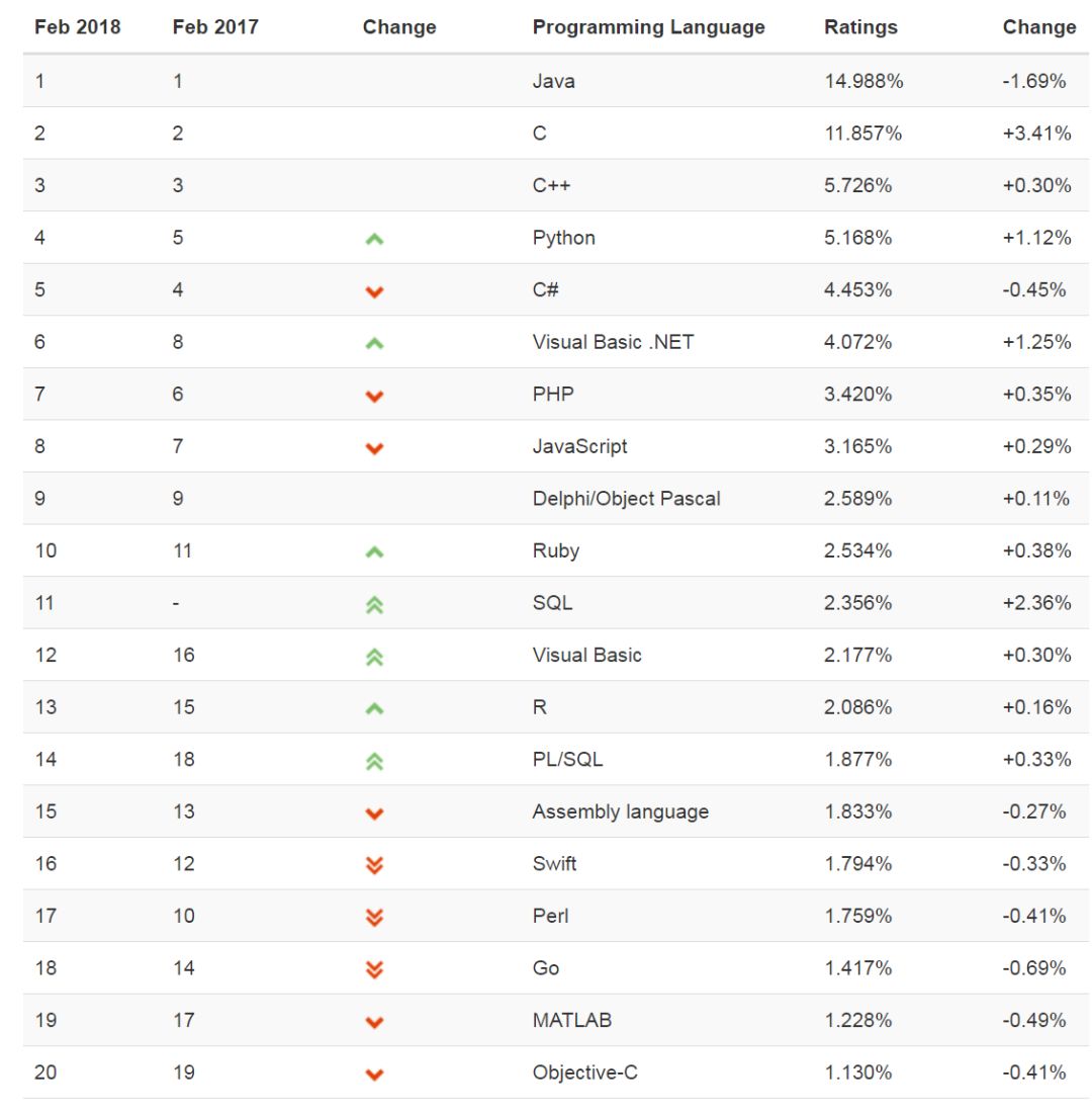 2 月编程语言排行榜 TOP20 榜单: