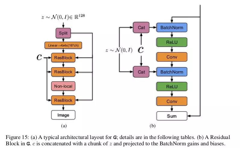 BigGAN 生成网络结构。