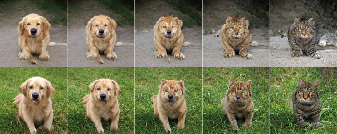 金毛和埃及猫的图像插值结果。