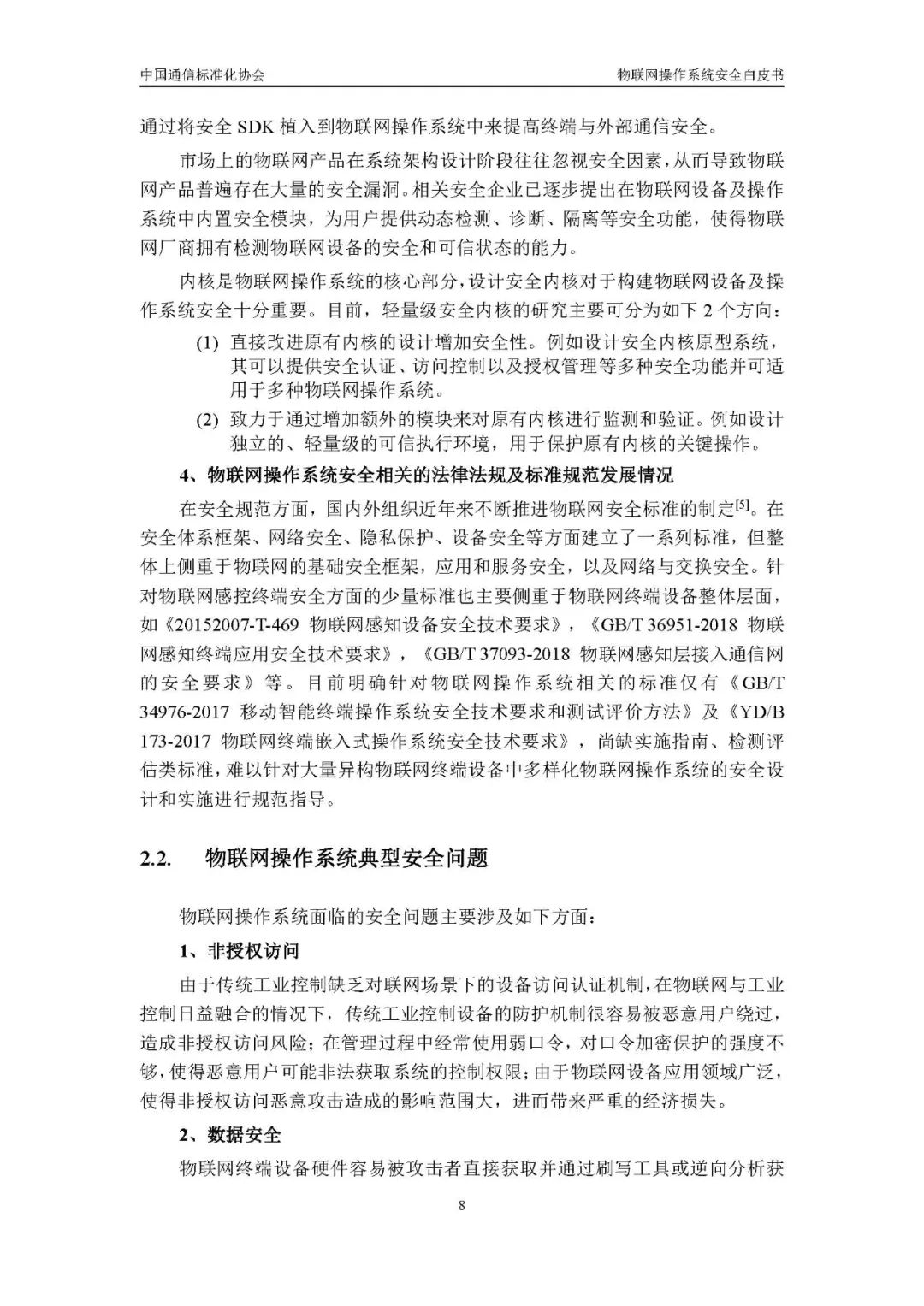 近日,中国通信标准化协会网络与信息安全技术工作委员会第28次全会成功举办。会上,由中国通信标准化协会(CCSA)网络与信息安全(TC8)安全基础工作组(WG4)牵头,联合多家具备物联网研究基础与实践落地经验的单位共同撰写的《物联网操作系统安全白皮书》(以下简称“白皮书”)正式发布。