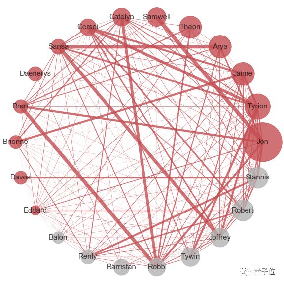 可以看到网络理论认为龙妈处在边缘位置,重要性不仅不如囧雪和小恶魔,甚至连二丫也没比过。