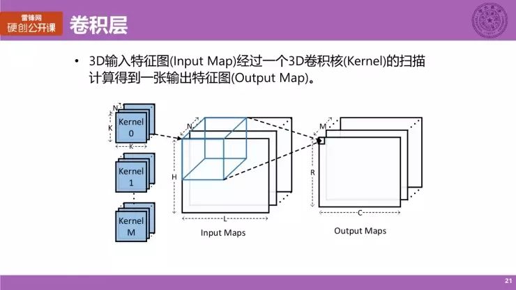 我们总共有 M 个 kernel,经过输入特征图进行计算之后就可以得到 M 张,或者说有 M 个 channel 的 Output Map,就是卷积层的计算。