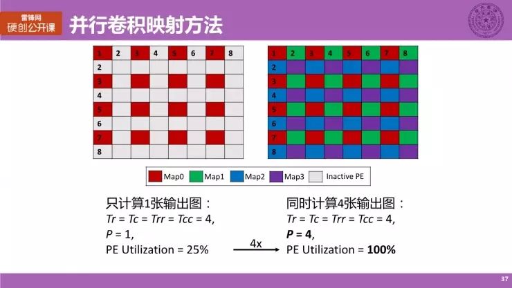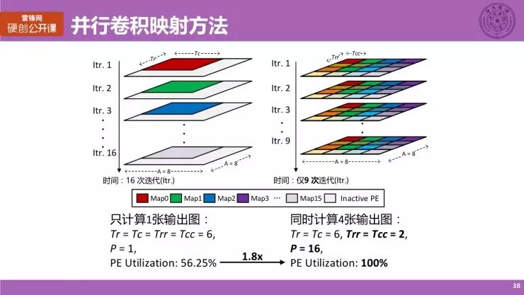 我们提出一种叫做「并行卷积计算方法」的一种映射方式,大家看这个图就很容易明白。因为这个方法本身的概念上其实很容易理解。