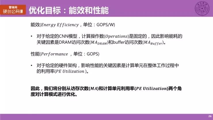 在讲完了我们的硬件架构模型以及研究对象以后,我们还要再讲一讲优化目标。刚刚也提到了两个优化目标,一个是能效(energy efficiency),另一个是性能。