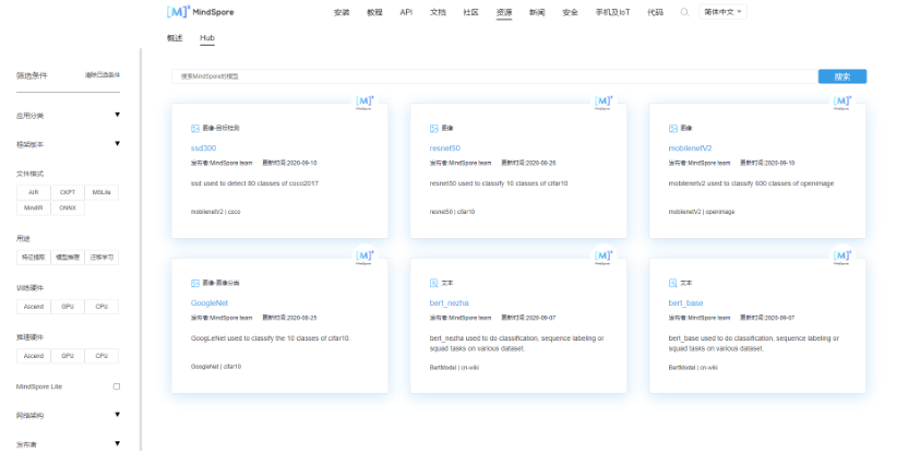 当开发者开展新项目时,往往需要从清洗数据开始,到训练模型,推理部署等多个流程,流程复杂,耗时较久。在1.0版本中,官方提供了40+个典型的高性能模型,覆盖了CV、NLP、推荐、语音等各个领域,大家可以使用这些模型直接推理或者加载自己的数据集做Fine-tuning,这样可以节省大量训练的时间和成本,快速开发出智能的服务和应用。开发者们可以在官网的Hub页面中通过筛选条件,快速找到自己想要的预训练模型,实现模型开发套件,“即开即用”。