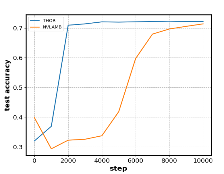 MindSpore自研二阶优化算法THOR通过减少二阶矩阵求逆次数以及降低二阶矩阵的维度来降低求逆时间,在Bert-Large上,使用MLPerf测试集,达到71.2%精度仅需3000step,端到端训练时间为14min,极大的提升了模型的训练速度。