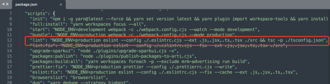 我们的做法是把 tsc 作为 lint 的一部分,无论是本地提交代码,还是线上打包,lint 不过时无法完成的,这就起到了强制的作用。从这个命令中我们还可以看到,除了 tsc 以外,我们还使用了 eslint 来对 TypeScript 做代码检查。