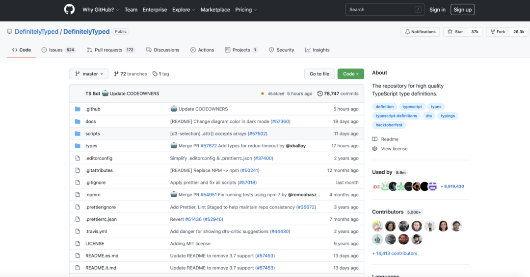 同时,我们更加推荐把声明文件发布到 DefinitelyTyped 上,让更多的人可以受益。