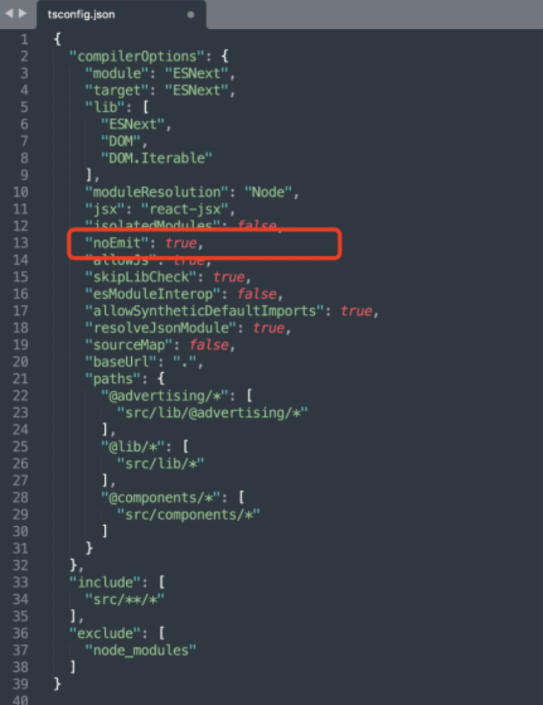这里我重点挑了几个参数:首先我们把 noEmit 设置成了 true,因为在我们项目中 tsc 只负责进行类型检查,并不真实输出 js 和.d.ts 文件。