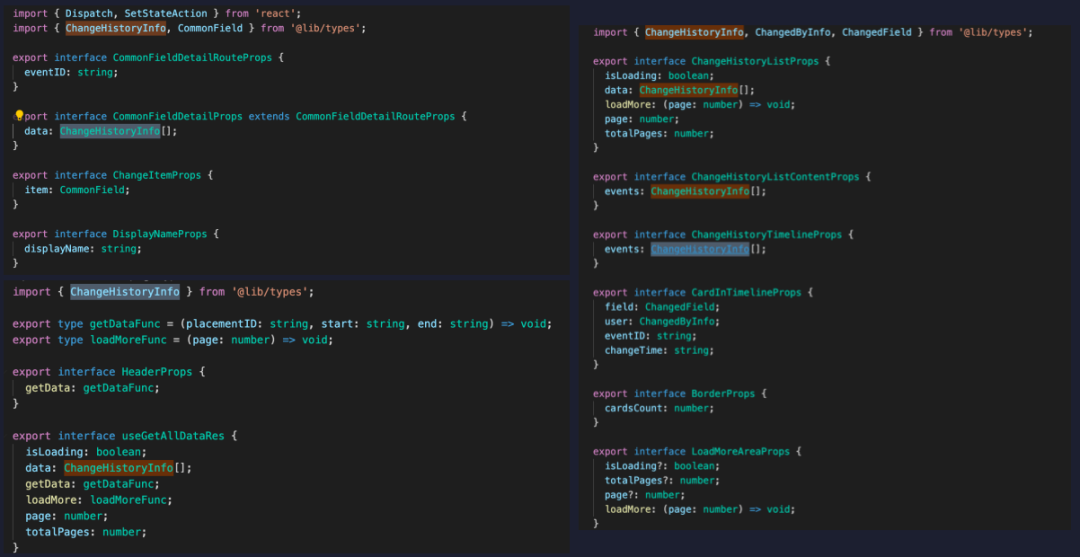 由于前端的页面展示的内容是以后端返回数据为基础的,这也决定了这样的类型会被多个上层类型定义所调用。