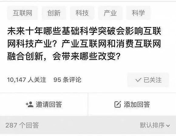 10 月 23 日半夜,时隔六年,马化腾再次出现在知乎论坛并提出一个问题:“未来十年哪些基础科学突破会影响互联网科技产业?产业互联网和消费互联网融合创新,会带来哪些改变?“瞬间,这一问题引起热议,涌现出大量回答,截至今日,网友的回答已有近 2000 条,网友纷纷来给小马哥出谋划策。