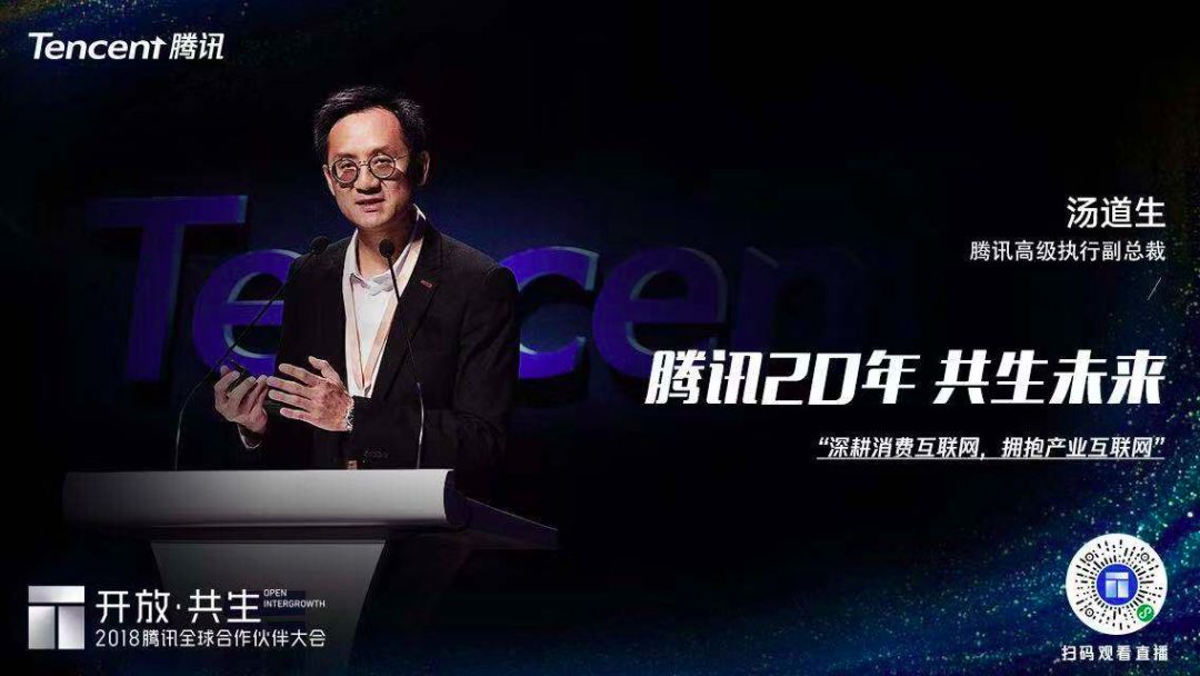 会议上,汤道生发表了题为《腾讯 20 年,共生未来》的演讲,阐明了腾讯未来将拥抱产业互联网的布局,InfoQ 记者将演讲要点整理如下: