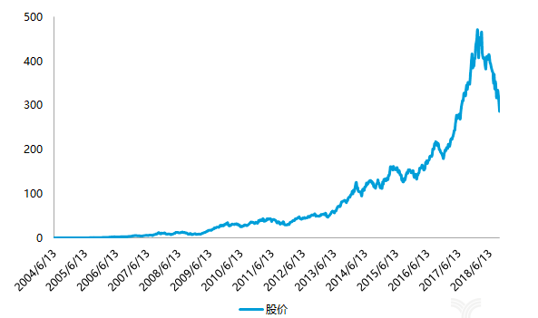 (2004-2018 年腾讯股价走势图)