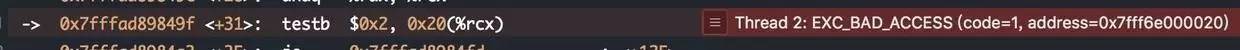 打开后发现是经典的EXC_BAD_ACCESS错误,以我浅薄的经验来看,这种一般是对一个已释放的内存的对象再次发送消息出现的。