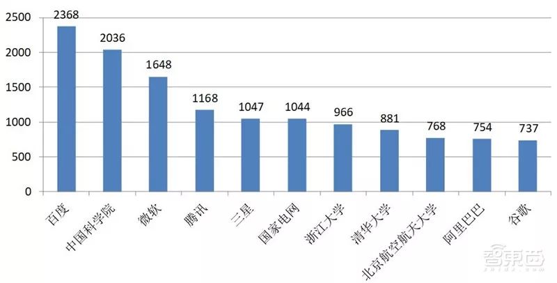 在机器学习和基础算法方向,国内的申请人主要集中在科研院所和大学,在排名前15位的申请人中,占到了10位。其余五位中,国外申请人只有微软,百度、腾讯、阿里巴巴和国家电网占据了其余四席。可见在人工智能的基础算法方面,国内的专利申请虽多,但大量成果仍然处于实验室阶段,只有比较有实力的大型企业才在基础算法方面投入较多。在排名靠前的申请人中,前两位的中国科学院和百度的申请量比较令人瞩目,几乎是第三位的两倍之多,分别成为科研机构和企业在这一领域的标杆。