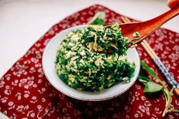 马兰给予人们的味觉是春天带来的恬淡。新鲜的马兰头不能直接吃,需要用水洗去浮尘,下到开水里烫去生涩,捞出攥去水分才能备用。拌小菜是它最直接的吃法。烫好的马兰吃法很多,可以同豆腐干一起切细凉拌,加些花生碎和麻油便是好菜。马兰还可以做成豆腐羹,嫩豆腐的爽滑和马兰的清香可谓是相得益彰。