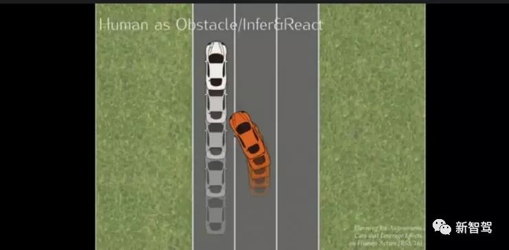在少数情况下,人类车辆之前有充足的空间的时候,无人车会超车变道,因为在这个嵌套优化中,机器人知道,如果它按这一方式超车变道,那么人的反应就是放慢速度,让无人车进入。
