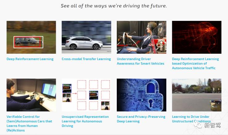 Berkeley Deep Drive认为,虽然目前计算机视觉领域已经取得了诸多颠覆性进展,但其中的很多技术还没有被很好地移植到汽车产业中进行应用,比如他们涉猎的技术场景包括:对于车辆的深度增强学习、理解驾驶员对智能汽车的认知、基于优化自动驾驶车辆交通环境的深度增强学习、关于安全和隐私保护的深度学习,等等。