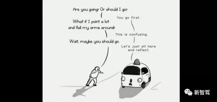 同样在这个漫画的例子中,无人车也可以通过稍稍后退让行人先走打破僵局。