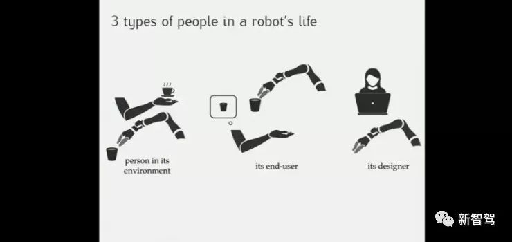 但现实中,机器人需要和三类不同的人打交道:在运行环境中的其他人、其使用者,以及其设计者。