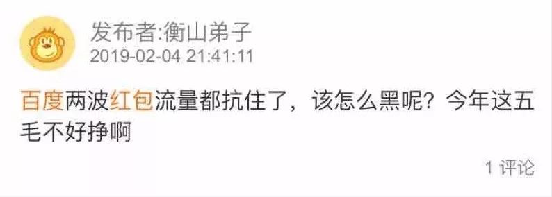 原本一看到“春晚+百度红包”的组合,我就知道这钱肯定没那么好拿,果断放弃,只是非常困惑,难道现在百度全家桶的获客成本已经低到1元一个用户了吗?
