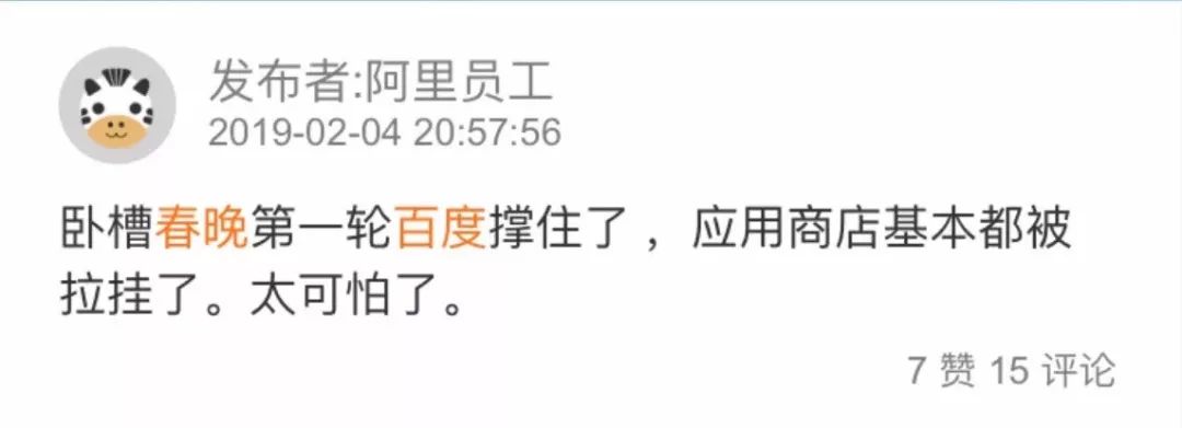 可惜,今年的百度是史上第一个扛住春晚流量的公司,游刃有余,毫不费力,反观各大手机应用市场、包括App Store、小米和华为就没那么幸运了,都被用户挤爆。