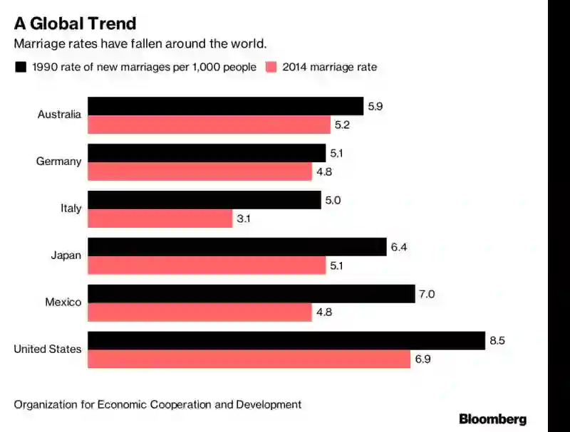 全球趋势:全球的结婚率都在下降