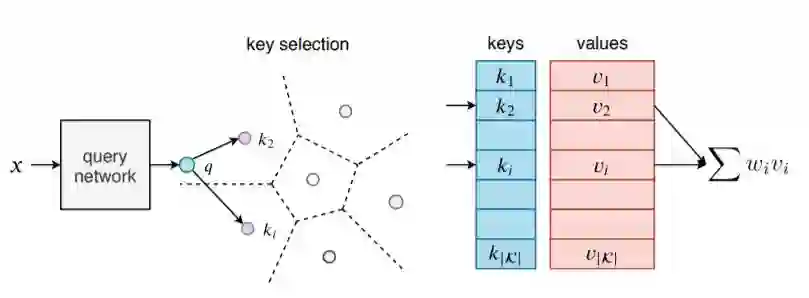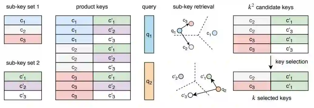 该层的效率依赖于两个关键因素:将key分解为产品集,以及对内存值的稀疏读/写访问。图层被集成到现有的神经网络架构中。