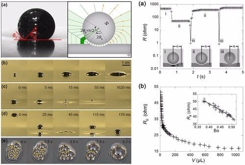 图1.液态金属冲浪效应及金属液滴-池界面间薄液膜的台阶形电阻响应现象